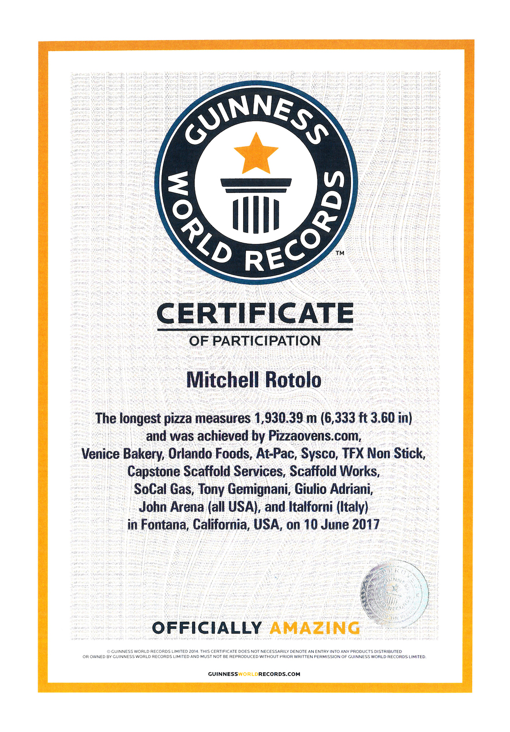 Guinness World Records – Certificate of Participation: The Longest Pizza