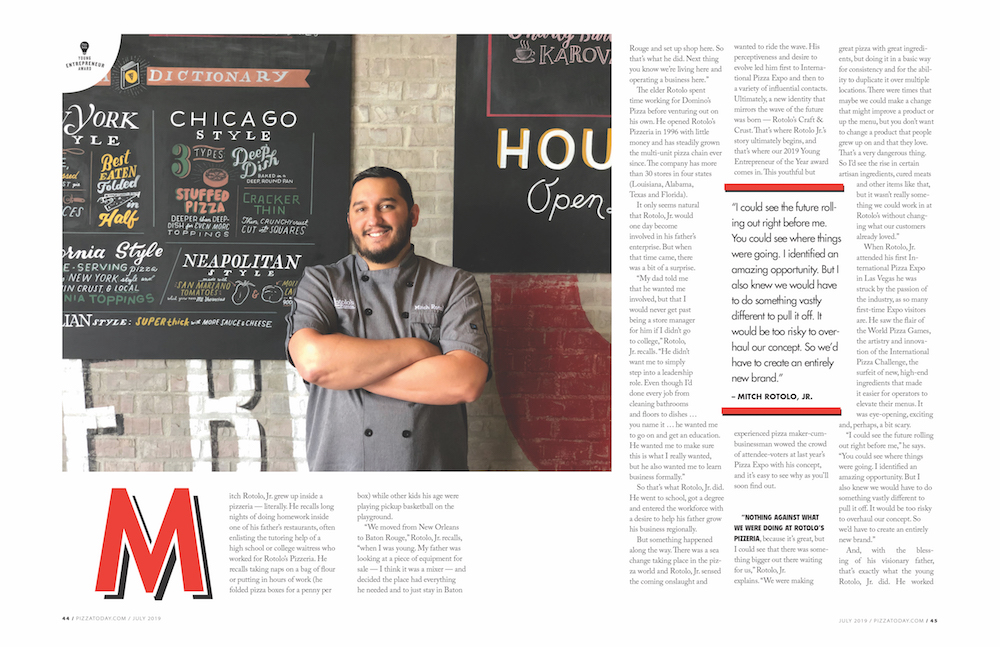 Mitch Jr. Pizza Today article – “I could see the future rolling out right before me. You could see where things were going. I identified an amazing opportunity. But I also knew we would have to do something vastly different to pull it off. It would be too risky to overhaul our concept. So we’d have to create an entirely new brand.” – MITCH ROTOLO, JR.